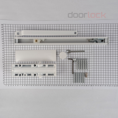 Комплектация Доводчик, тяга скользящая, крепежный набор, инструкция, шаблон для монтажа