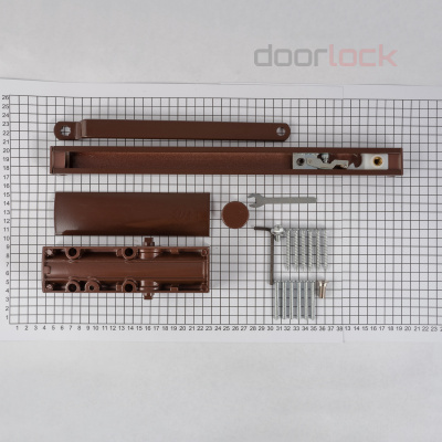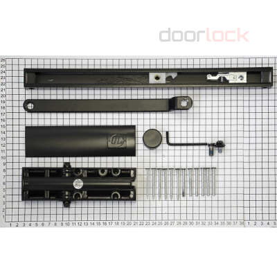 Комплектация Доводчик, тяга скользящая, крепежный набор, инструкция, шаблон для монтажа
